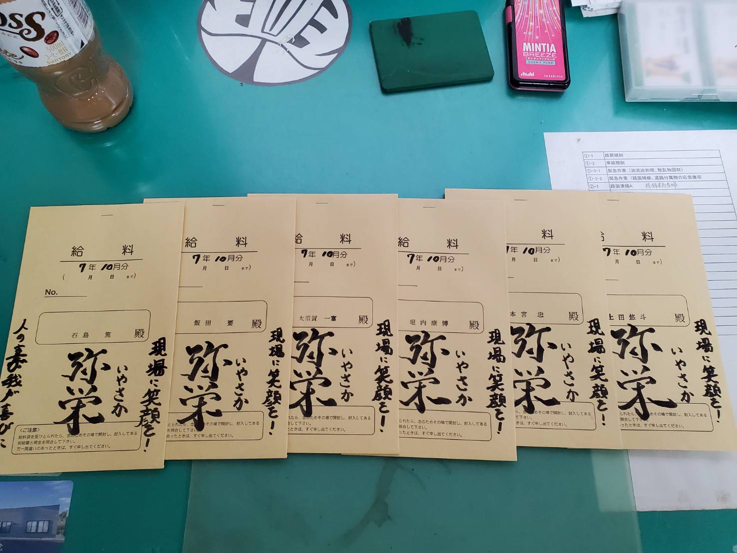 最近では、給料袋に「そしじ」の文字をそっと書いてみたりもしています。